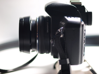 ところで、このライカ用のレンズフードは、なぜ穴があいているのか。調べてみると意味があった。ライカは、カメラ本体にレンジファインダーがあるため、フードを付けると視野を遮ってしまう。そこで、この穴あきフードが考案されたそうである。E-420の肩越しから覗くと確かにフードの向こう側が見える。一眼レフの場合、穴あきの意味はない。そして、この穴あきフードがどれだけ光の乱反射を抑えてくれるのかも疑問だ。
