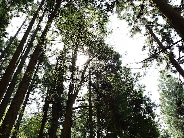 銚子ヶ渕から薄暗い渓流沿いの道を抜けると、杉並木ゾーンへ。ここは神秘的で木漏れ日が綺麗です。千年の歴史を持つ官道であり、昔の人は旅人や道を守るために松や杉の木を植えました。道標の役割もあったとのことですから、確かに真冬だったら右に進んでもおかしくない。
